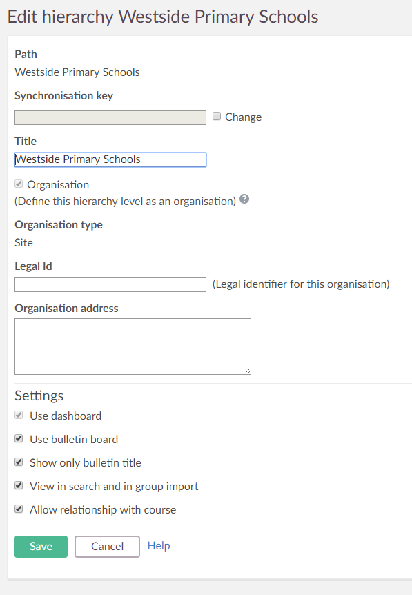 | Titel | Der Name der Hierarchieebene/Gruppe, z. B. "Alle Studenten", "Jahresgruppen". |